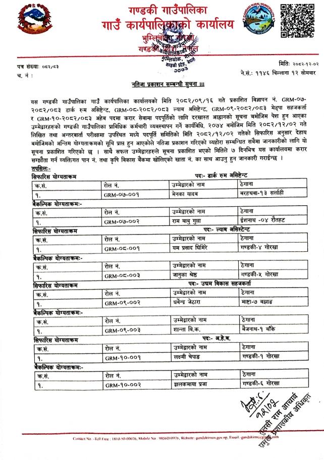 नतिजा प्रकाशन सम्बन्धी सूचना ।।