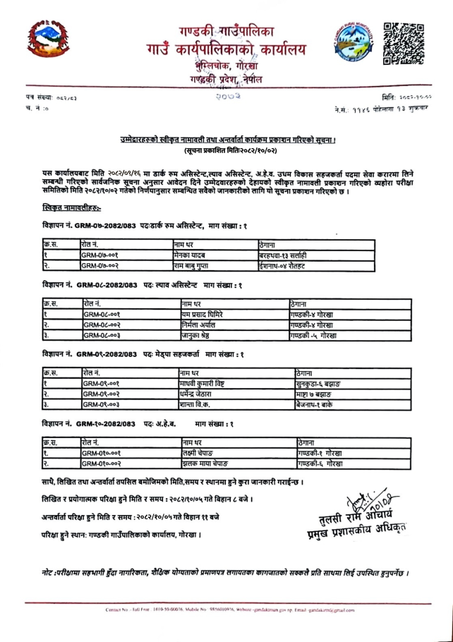 उम्मेद्धारहरुको स्वीकृत नामावली तथा अन्तर्वार्ता कार्यक्रम प्रकाशन गरिएको सूचना !! सूचना प्रकाशित मितिः २०८२/१०/०२ गते ।