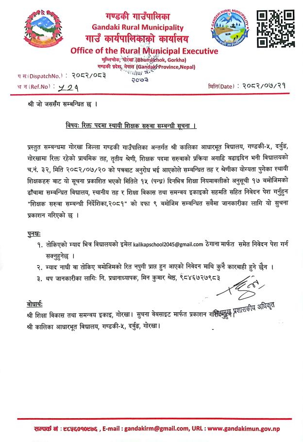रिक्त पदमा स्थायी शिक्षक सरुवा सम्बन्धी सूचना ।