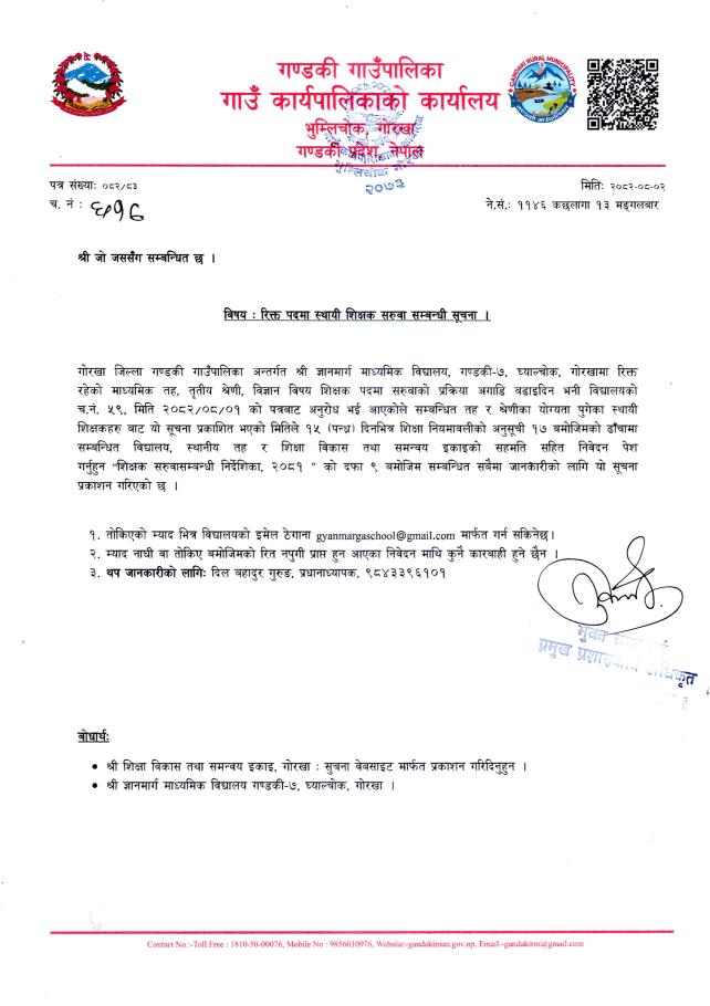» रिक्त पदमा स्थायी शिक्षक सरुवा सम्बन्धी सूचना ।